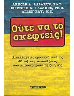 Δύο ψυχολόγοι και ένας ψυχίατρος απομυθοποιούν τις 40 σημαντικότερες "τοξικές" πεποιθήσεις που υποβαθμίζουν την ποιότητα της ζωής μας, καταρρακώνοντας την αυτοεκτίμησή μας και μας οδηγούν στην κατάθλιψη, το άγχος και τις ενοχές.